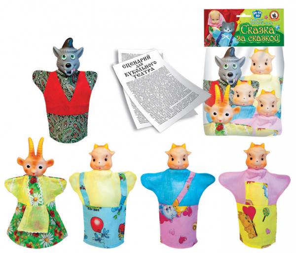Состав кукол-перчаток в наборе: Коза, Волк, Первый, Второй, Третий козлята