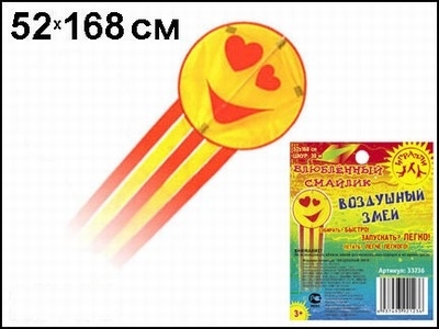 Воздушный змей "Влюбленный смайлик": для детей от 3 лет. - 520*1680 мм, шнур 30 м. - (Игралли). - "Ningbo ningshing international. ink"