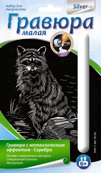 Енот. Создание малой гравюры с серебро-металлическим эффектом. - ф.165*110 мм, для детей старше 6 лет.