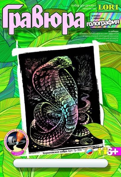 Королевская кобра. Создание гравюры с цветной основой: размер 178*237 мм, для детей старше 6 лет.
