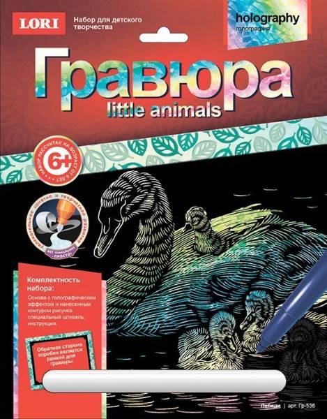 Лебеди. Создание гравюры с голографическим эффектом. - ф.178*237 мм, для детей старше 6 лет.