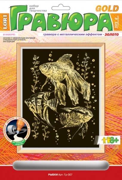 Рыбки: Создание гравюры с золото-металлическим эффектом. - ф.178*237 мм, для детей старше 6 лет.