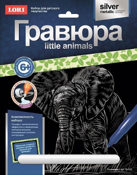 Слоненок: Создание гравюры с серебро-металлическим эффектом. - ф.178*237 мм, для детей старше 6 лет.
