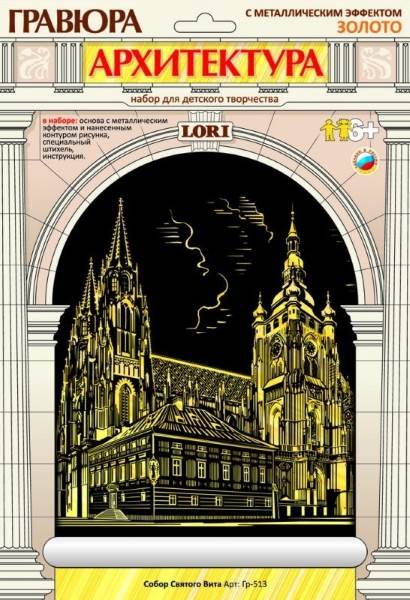 Собор святого Вита: Гравюра с золото-металлическим эффектом, размер 178*237 мм, для детей от 6-ти лет.