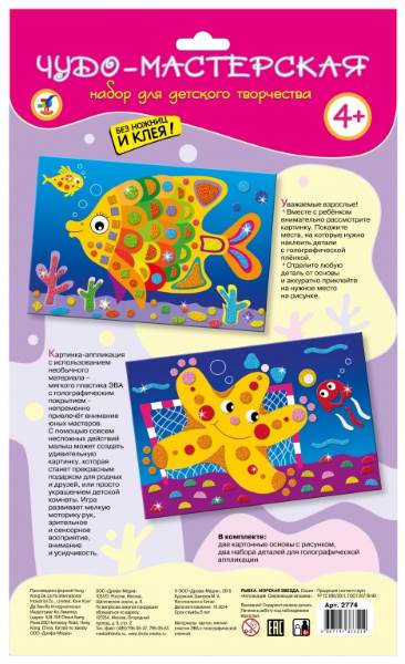Малыш легко справится с работой, ведь ему не нужны ни клей, ни ножницы: объёмные детали легко приклеятся на картонную основу. Готовая картинка станет прекрасным подарком для родных и друзей, или просто украшением детской комнаты.
