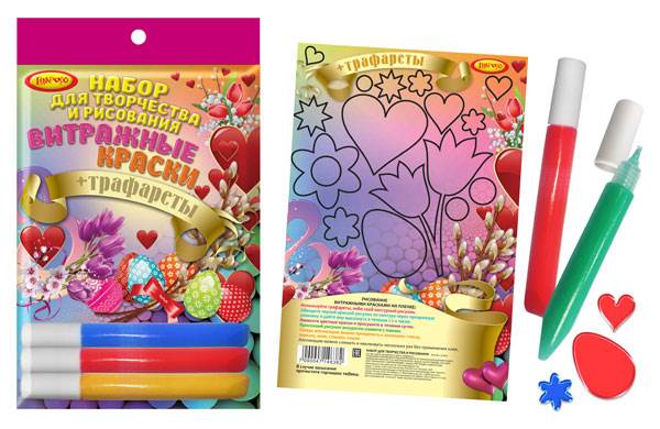 Витражные краски, набор 3 цв. + трафарет, "Limpopo"