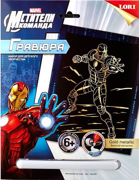 Железный человек. Мстители. Гравюра с золото-металлическим эффектом, размер 180*240 мм, для детей от 6-ти лет.