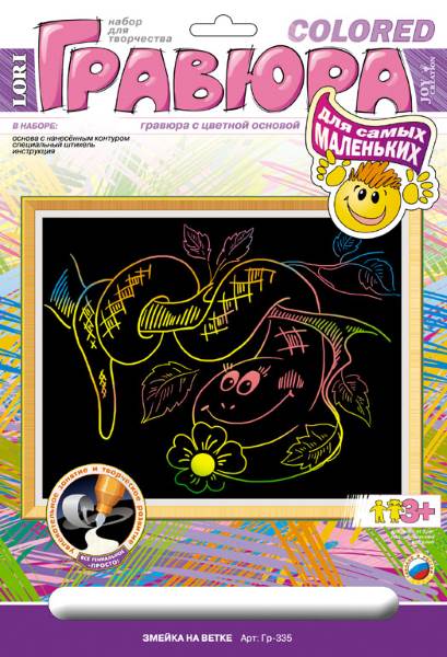 Змейка на ветке. Создание гравюры с цветной основой: размер 178*237 мм, для детей старше 3-х лет.