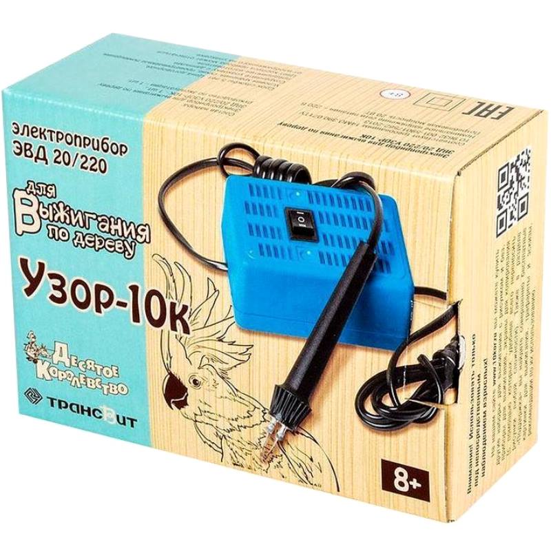 Электроприбор «Узор-10к» (ЭВД-20/220) имеет небольшие габариты, помещен в прочный пластмассовый корпус, а два режима нагрева выжигателя...