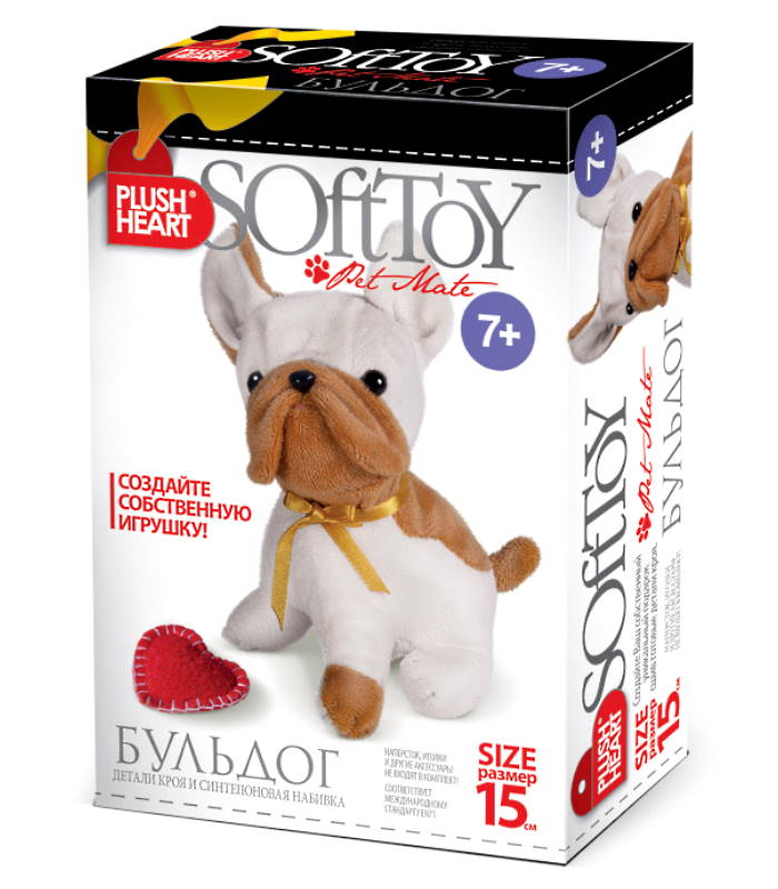 Плюшевое сердце. Бульдог. 15 см. Шитье игрушки. 7+. "Эльф-Маркет"
