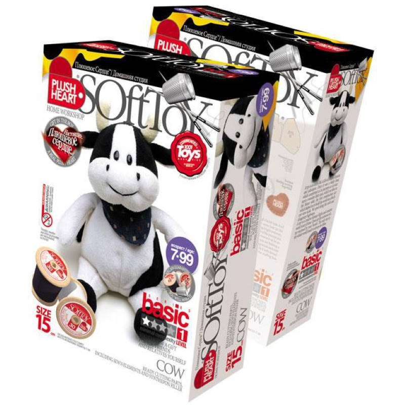 Плюшевое сердце. Корова. 15 см. Шитье игрушки. 1 уровень. 7+. "Эльф-Маркет"