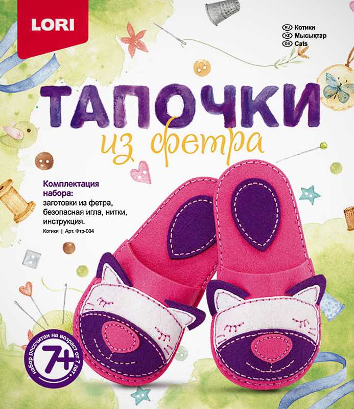 Шьем из фетра. Для детей от 7 лет. - "LORI" (модель: Тапочки "Котики", арт.Фтр-004)