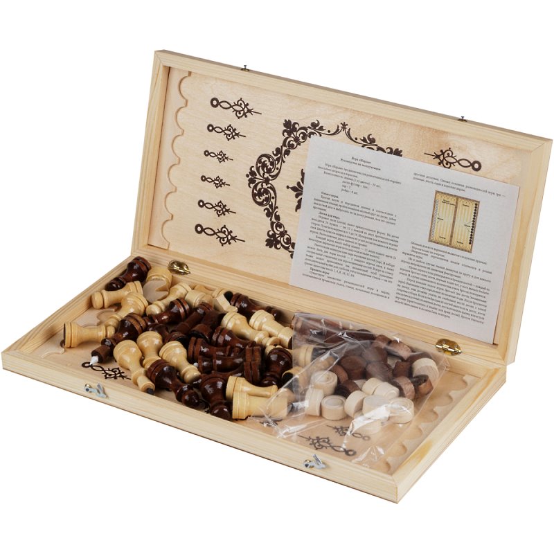 Набор игр 3в1 «Нарды, шашки, шахматы» позволяет выбрать различные варианты времяпровождения. Играть можно как всей семьёй, так и приятельской компанией. В комплект входят: деревянные фигуры, покрытые лаком; 2 комплекта деревянных фишек, 2 кубика и деревянная доска 40*40 см.