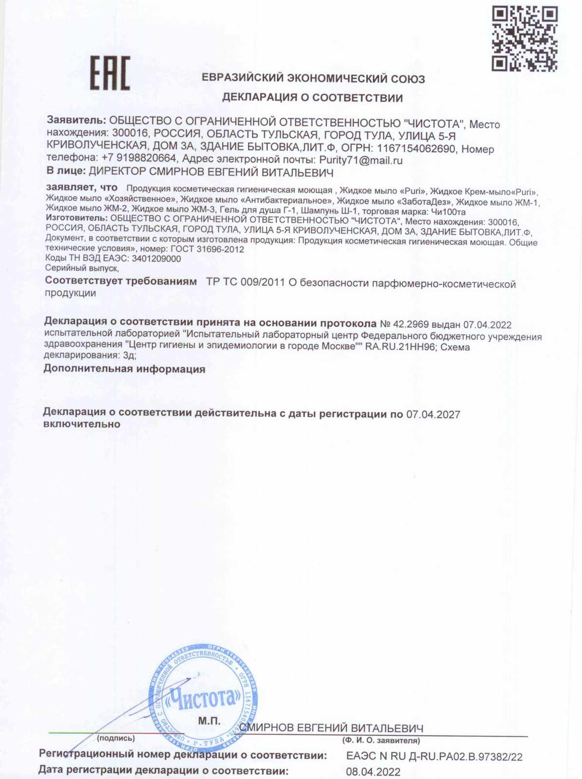 Жидкое мыло "Puri Яблоко", ПЭТ канистра 5 л, "Чи100та"
