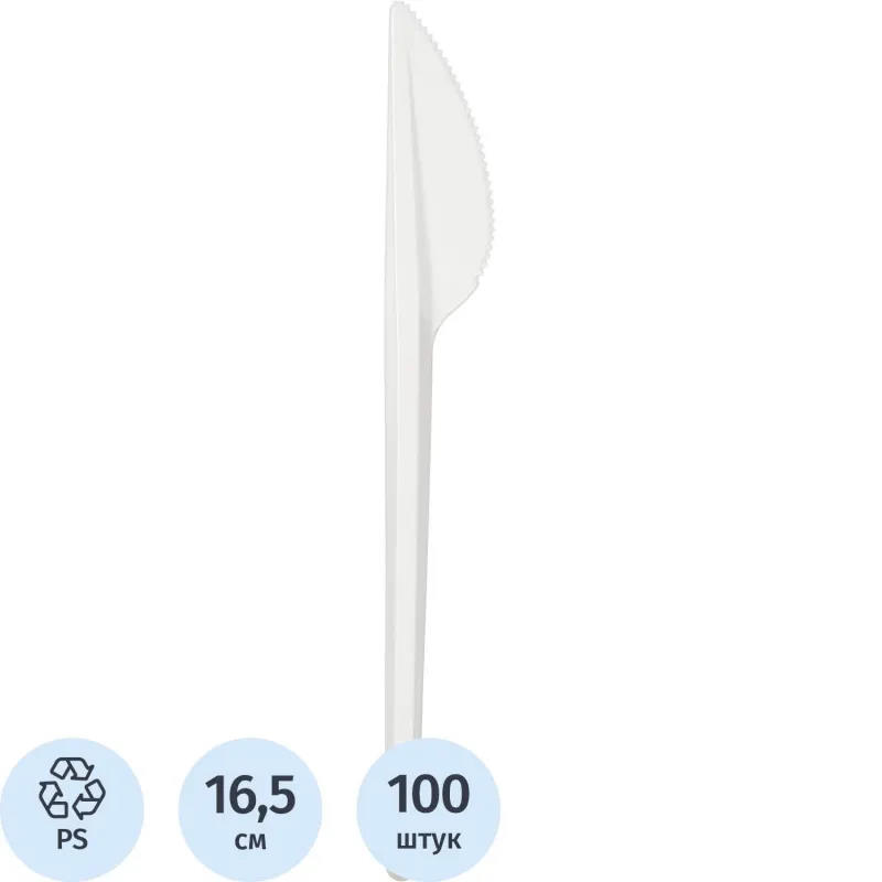 Одноразовые ножи 165 мм, белый полистирол, упак. 100 шт.