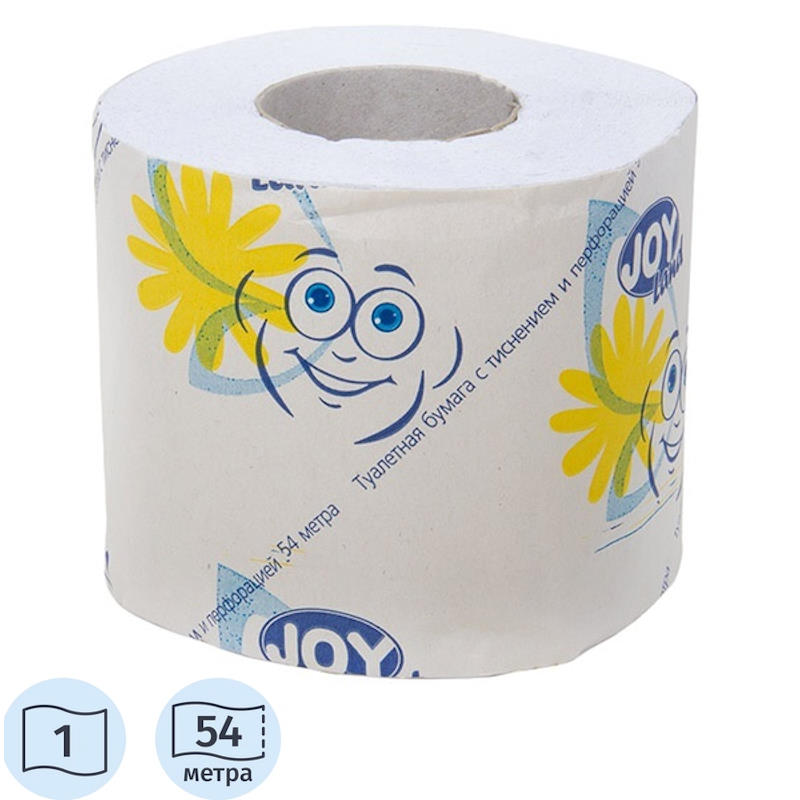 Бумага туалетная "JOY Land" 1-слойная, 54 м, 432 л, 90*125 мм, втулка d-48 мм, рулон d-105 мм, перфорация, "Бумага ТД"