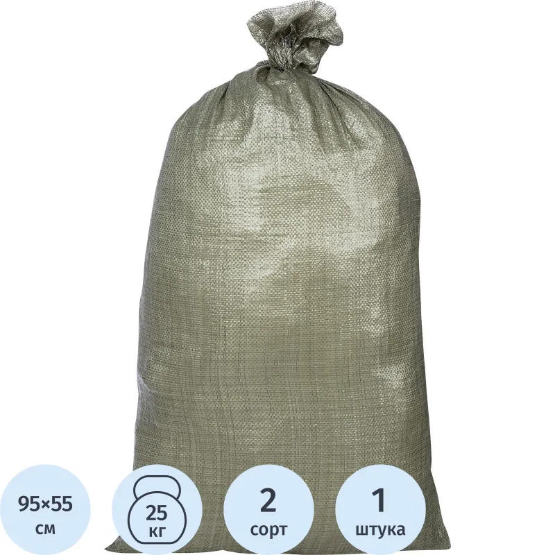 Мешок строительный полипропиленовый, зеленый. Длина — 55 см, высота — 95 см. Вес изделия: 35 г, плотность ПП мешка — 40 гр/м2. Грузоподъемность: до 25 кг. Используются для сбора мусора, бытовых отходов относятся к котегории самых ходовых, используются на производстве, строительных площадках.