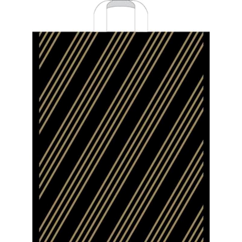 Пакеты полиэтиленовые с петлевой ручкой. Материал - полиэтилен, не шуршащие, гладкие. Небольшая толщина пакета, экономичный вариант. Классический пакет черного цвета в полоску. Подойдет для упаковки покупок, заказов, ежедневного использования в торговле. Пакеты ПВД прочны при растяжении и сжатии, стойки к удару и разрыву, устойчивы к проколам и поперечным разрывам. При больших нагрузках могут немного растягиваться или трескаться, но не рваться. Водо и паронепроницаемы.