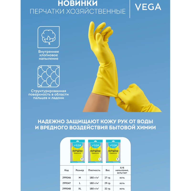 Перчатки хозяйственные, латекс 0,17 мм, рифленая поверхность, хлопковое напыление, "VEGA" [76529]