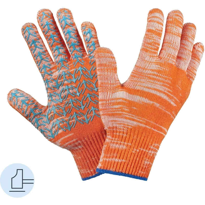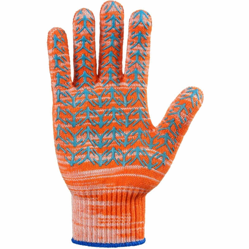 Перчатки трикотажные, 6-ти ниточные, ПВХ - елочка, оранжевые, 10 класс