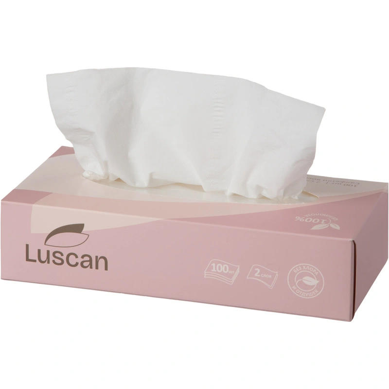 Салфетки бумажные двухслойные, белые, 200*200 мм, картонный диспенсер, упак. 100 шт, "Luscan"