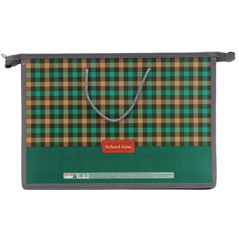 Папка детская ф.А4, молния сверху, ручки-шнурки, цветной пластик/ткань, 325*230*55 мм, "Проф-Пресс" (картинка: Школьная классика, арт.П-6005)