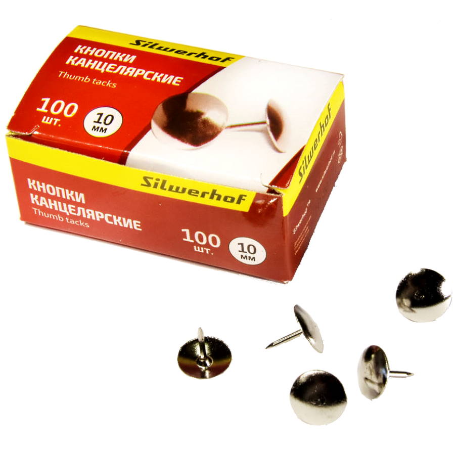 Кнопки никелированные, шляпка 10 мм, игла 9 мм, 100 шт, картонная упак, "Silwerhof"