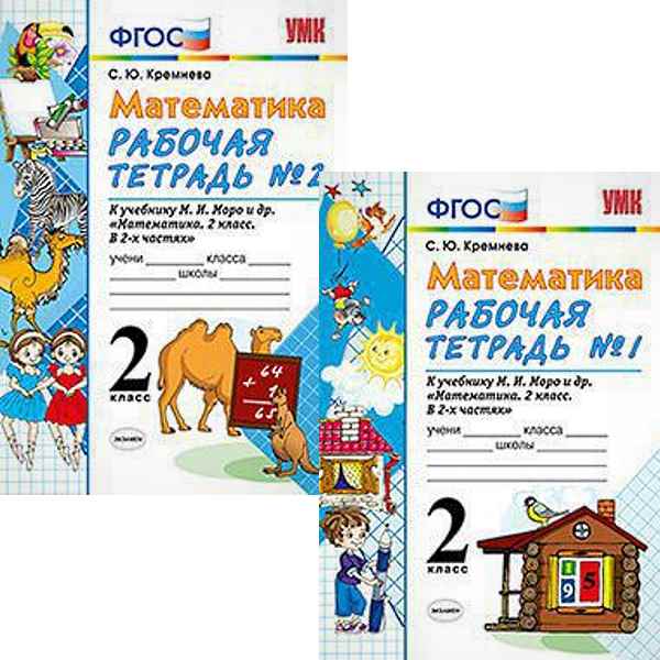 Кремнева С.Ю. Математика. 2 кл. Рабочая тетрадь. Комплект в 2 частях. УМК Моро М.И. - М.: Экзамен, 2019. - 64 с. + 64 с. - (ФГОС. УМК). - мягк. обл.