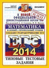 Сергеев Н.Н, Смирнов В.А, Шестаков С.А, Шноль Д.Э, Ященко И.В. ЕГЭ 2014. Математика. Типовые тестовые задания / Под ред. Семенова А.Л, Ященко И.В. - М.: Экзамен, 2014. - размер 289*207 мм. - 56 с. - (ЕГЭ. ОФЦ. Типовые тестовые задания). - мягк. обл.