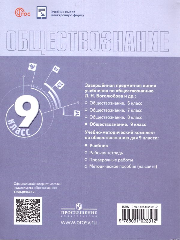 Боголюбов Л.Н, Матвеев А.И, Жильцова Е.И. Обществознание. 9 кл. Учебник. - М.: Просвещение, 2024. - 208 с. - (Новый ФГОС). - мягк. обл.