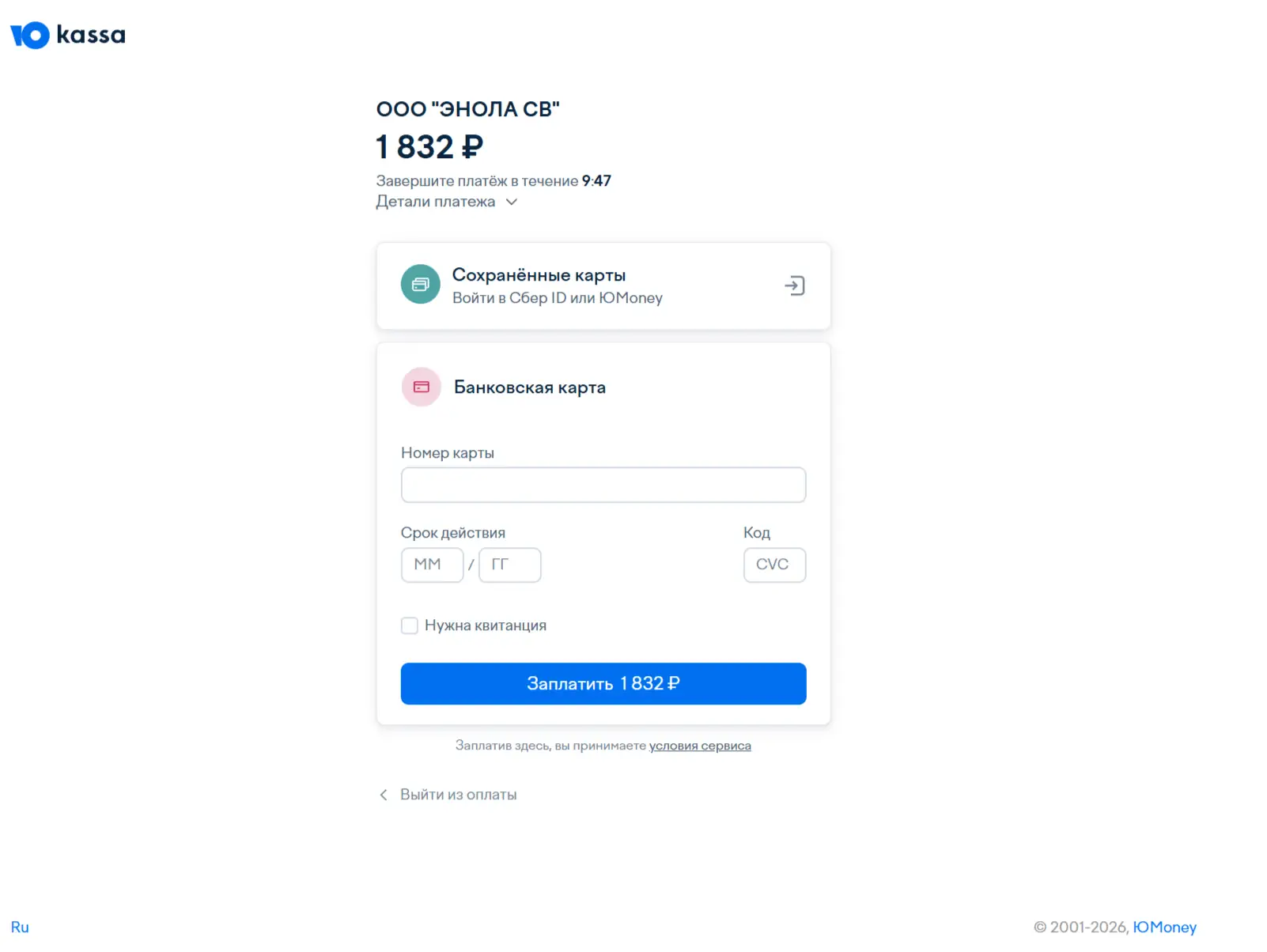 Оплата банковскими картами, выпущенными в России.