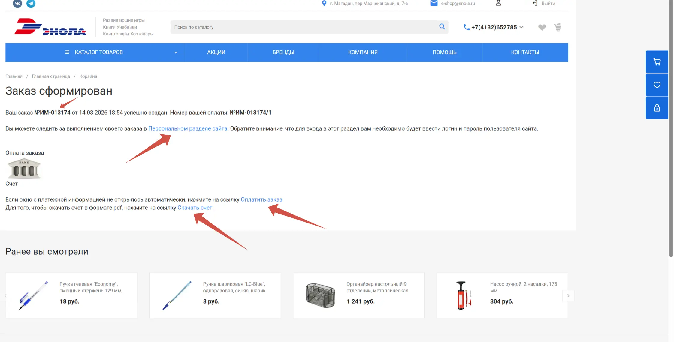 Комплектация заказа производится после поступления денежных средств на счет ООО «Энола СВ».