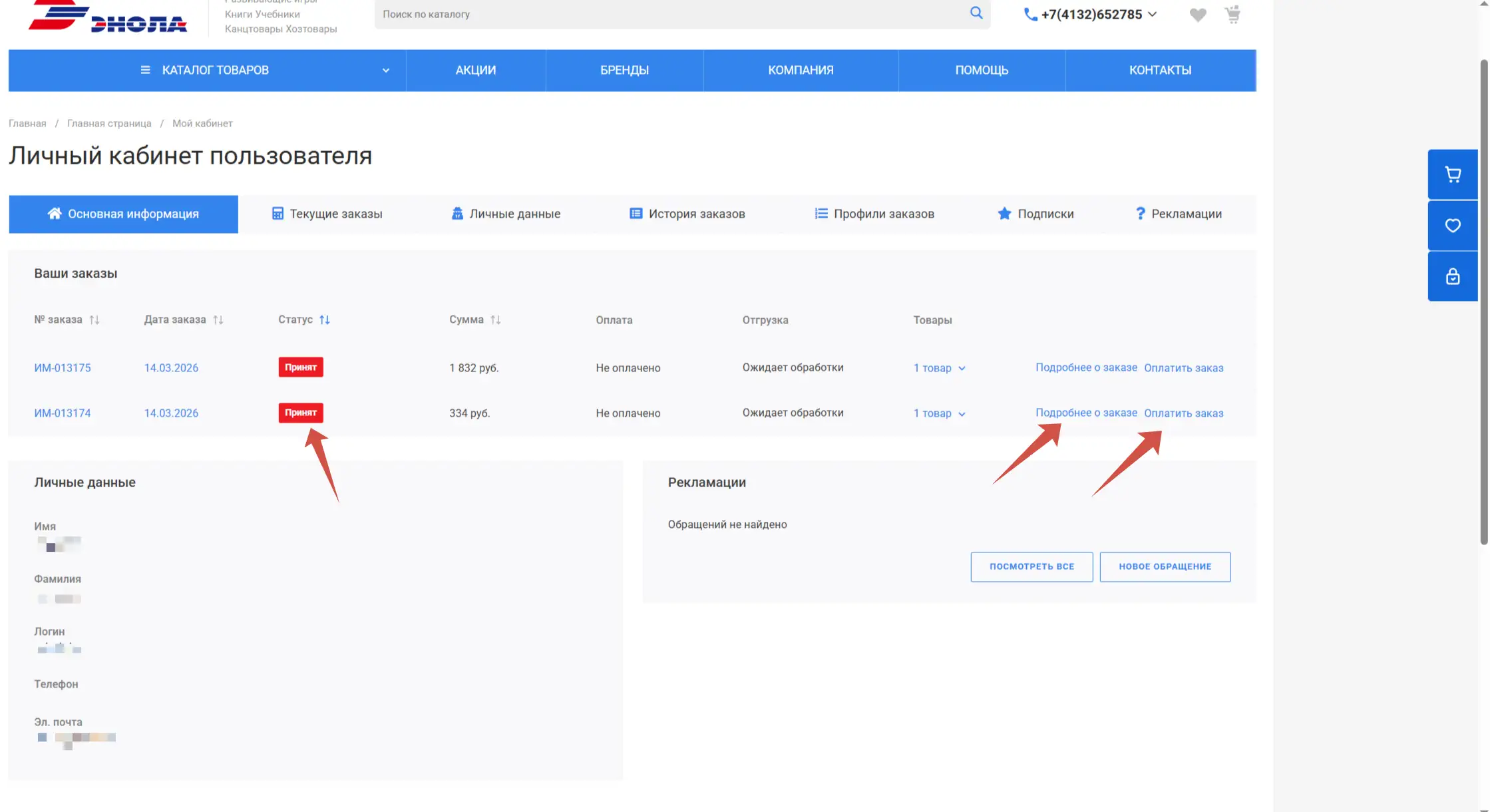 Вы можете проверить статус заказа, отменить, оплатить или повторить выполненный заказ прямо в личном кабинете.